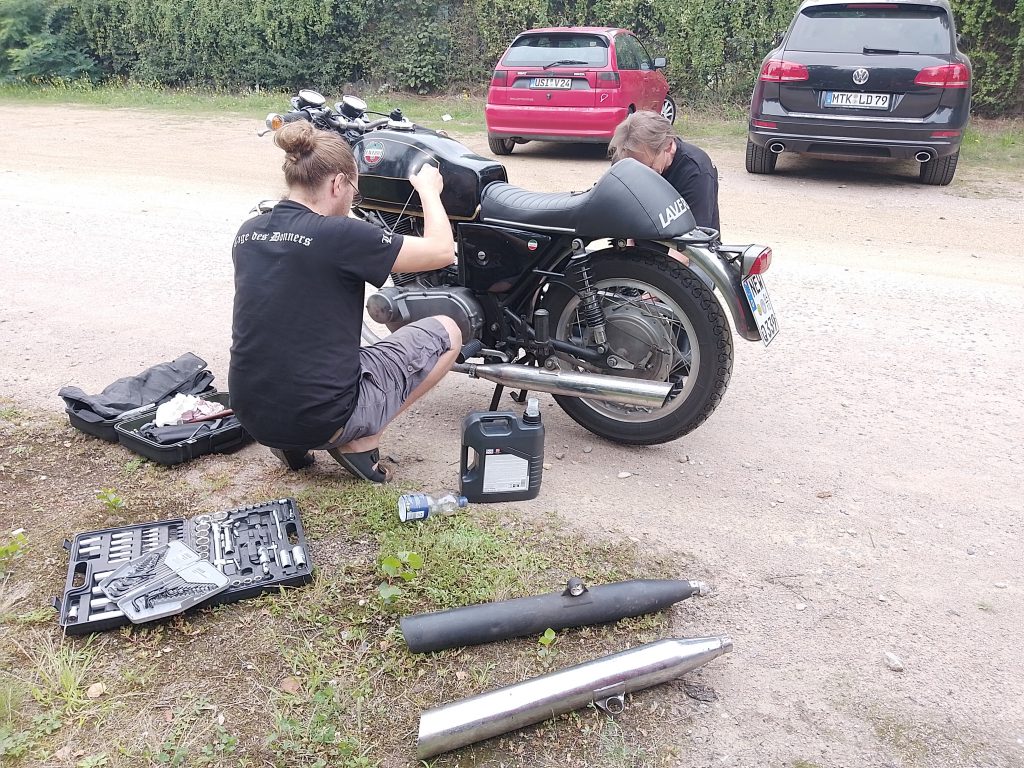 Bevor sie aber starteten wurden die Auspuff Tütten gegen gute gebrauchte getauscht, da die alten in einem unsäglichen Schwarz lackiert waren und zudem keinerlei Dämmung inne hatten.