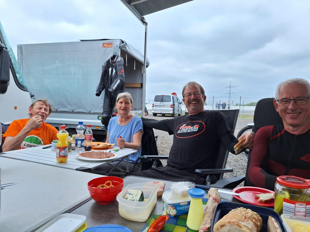 Am ersten Tag war der Himmel bedeckt, aber einigermaßen warm. Unsere Maschinen liefen gut, nur an Louis 500ter mussten einige Abstimmungs Arbeiten gemacht werden. Aber am Nachmittag hatten wir Sie dann im Griff. In Einstundentakt kam man genug zum Fahren.