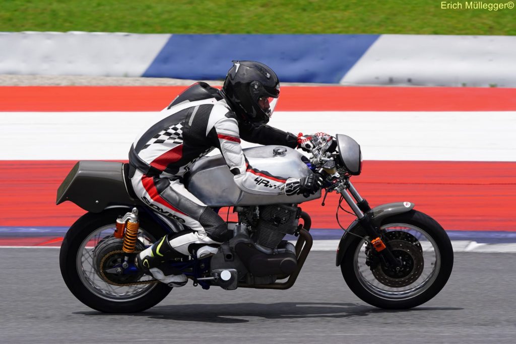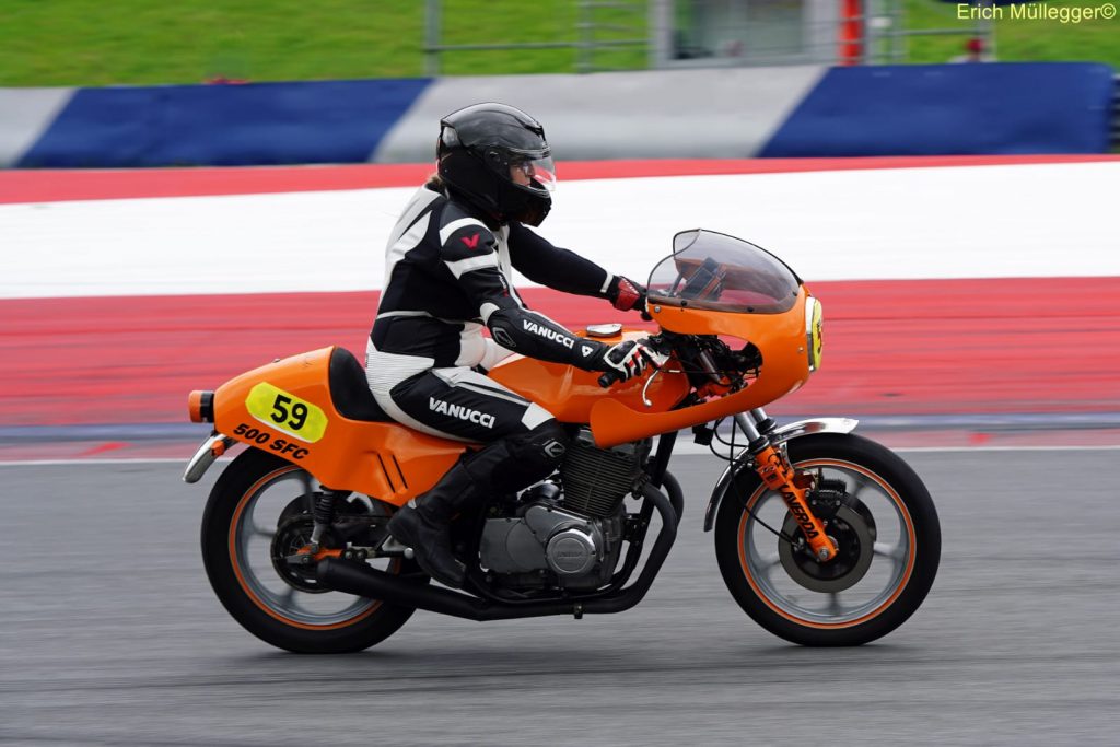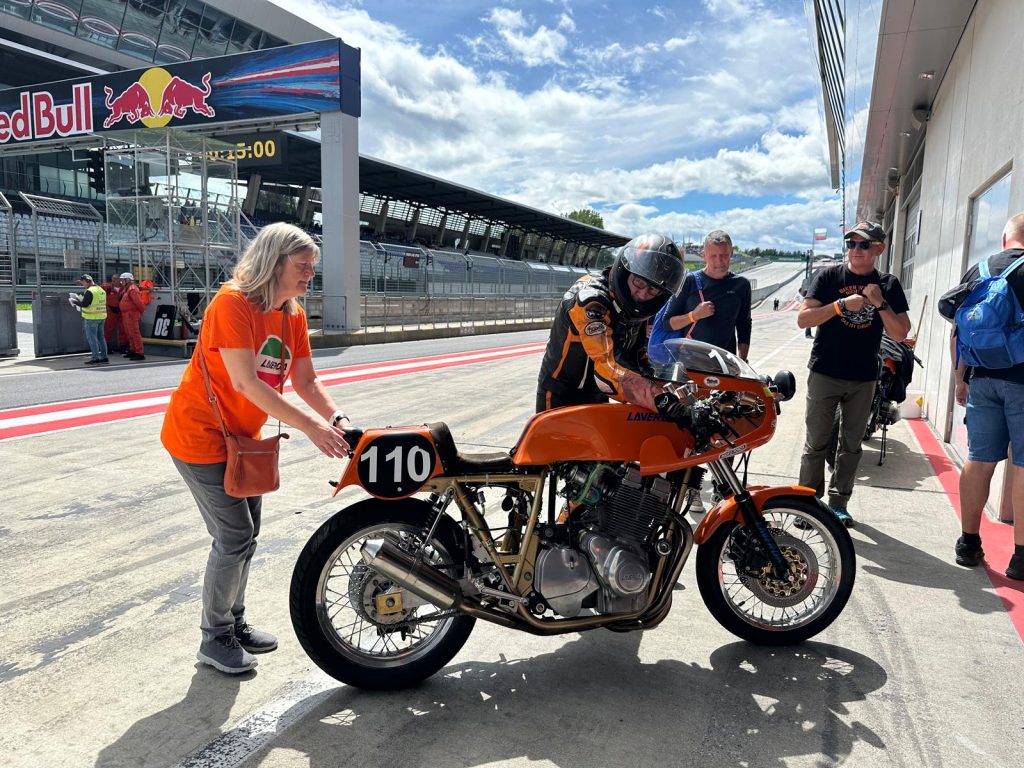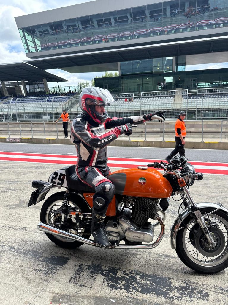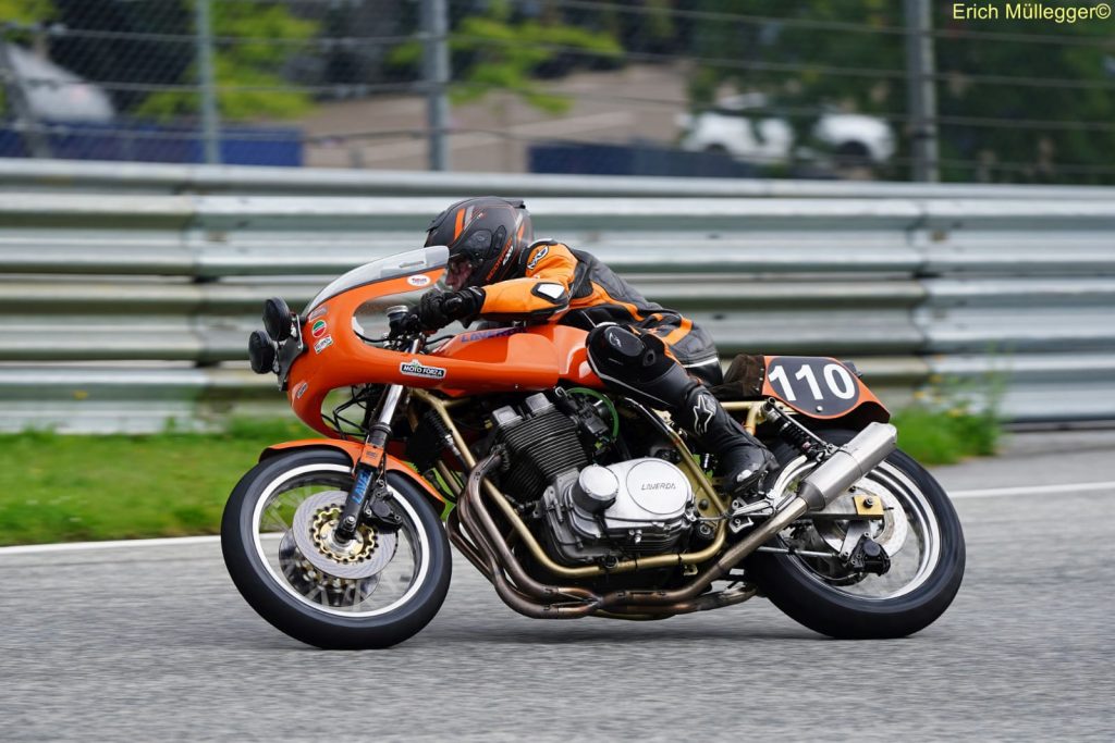 Lucas brachte seine Eigenbau Laverda erstmals an den Start. Willi startete seine Spaceframe für die Parade und ich meine Motoplast. Bei den Trainings fuhr ich sehr zurückhaltend, da ich ja noch Metallteile von meinem Unfall letztes Jahr mit mir rumschleppe.
