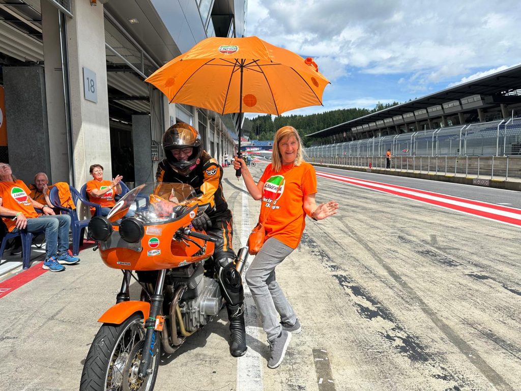 Am Sonntag Früh die Sonne scheint und es ist bestes Rennwetter. Nach dem Frühstück humpelte dann auch wieder Horst in die Box, mit geschwollen Knie und einer gehörigen Portion Schmerzen. Aber er Wolle noch die Rennen fahren.